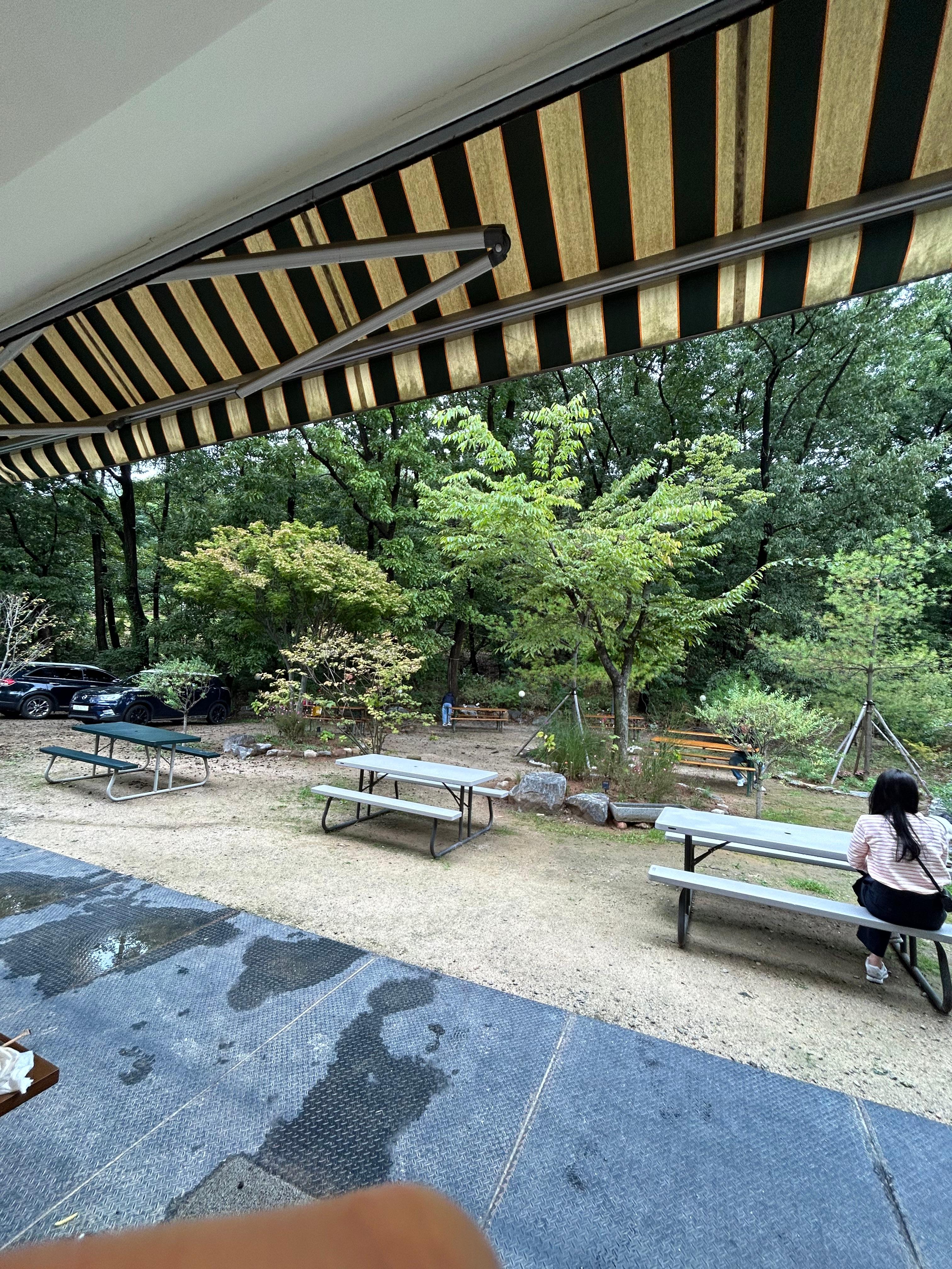 1층 바깥쪽에는 이렇게 야외에서 먹을 수 있는 테이블도 마련되어 있었어요. 비가 와서 아쉬웠지만 날이 맑을 때는 야외에서 햄버거와 감자튀김을 먹어도 맛있을 것 같아요.
