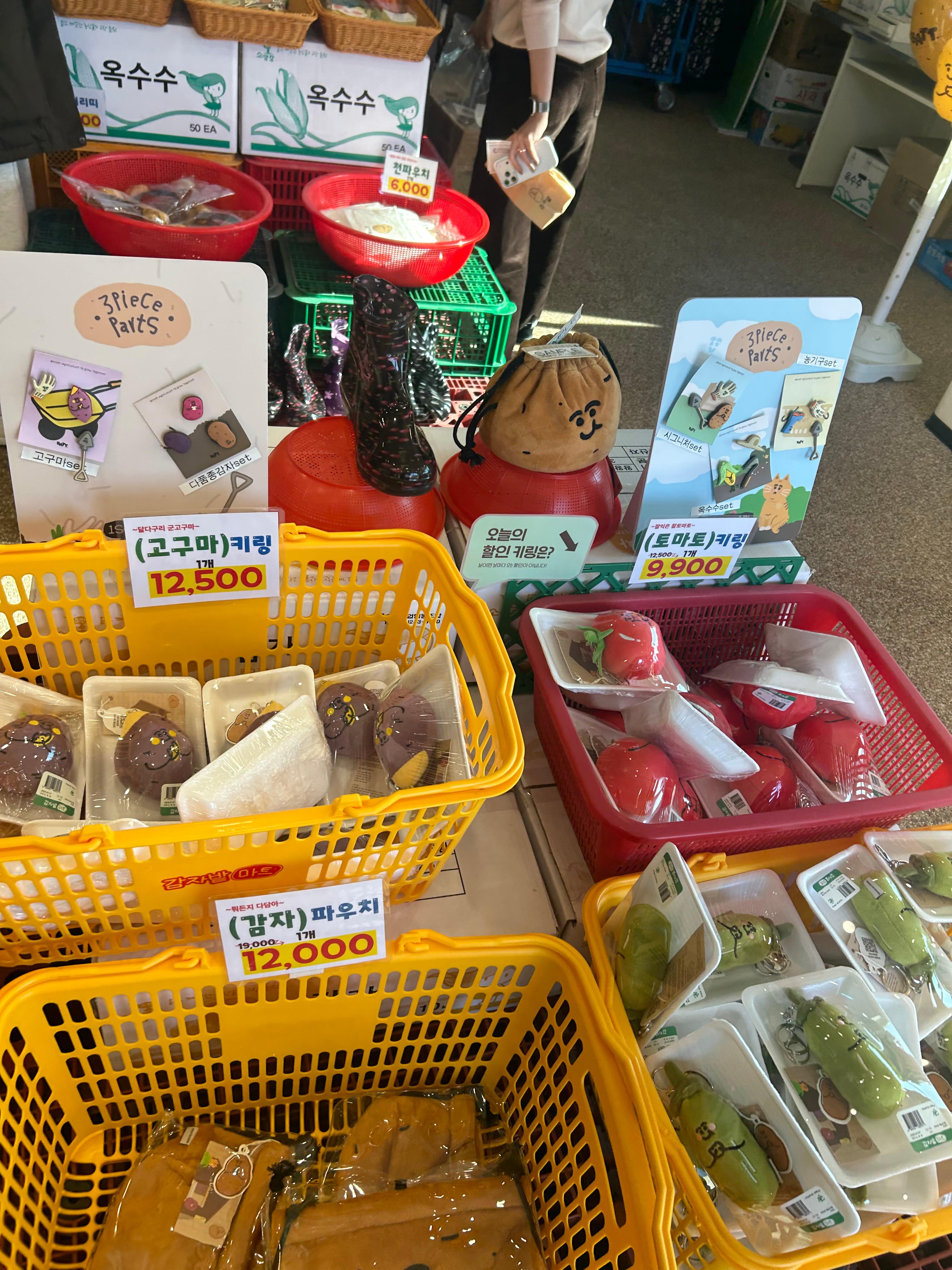 이렇게 채소가게를 모티브로 해서 다양한 구황작물 인형을 판매하고 있었어요. 커피와 빵을 기다리면서 보는 재미가 아주 쏠쏠했답니다.