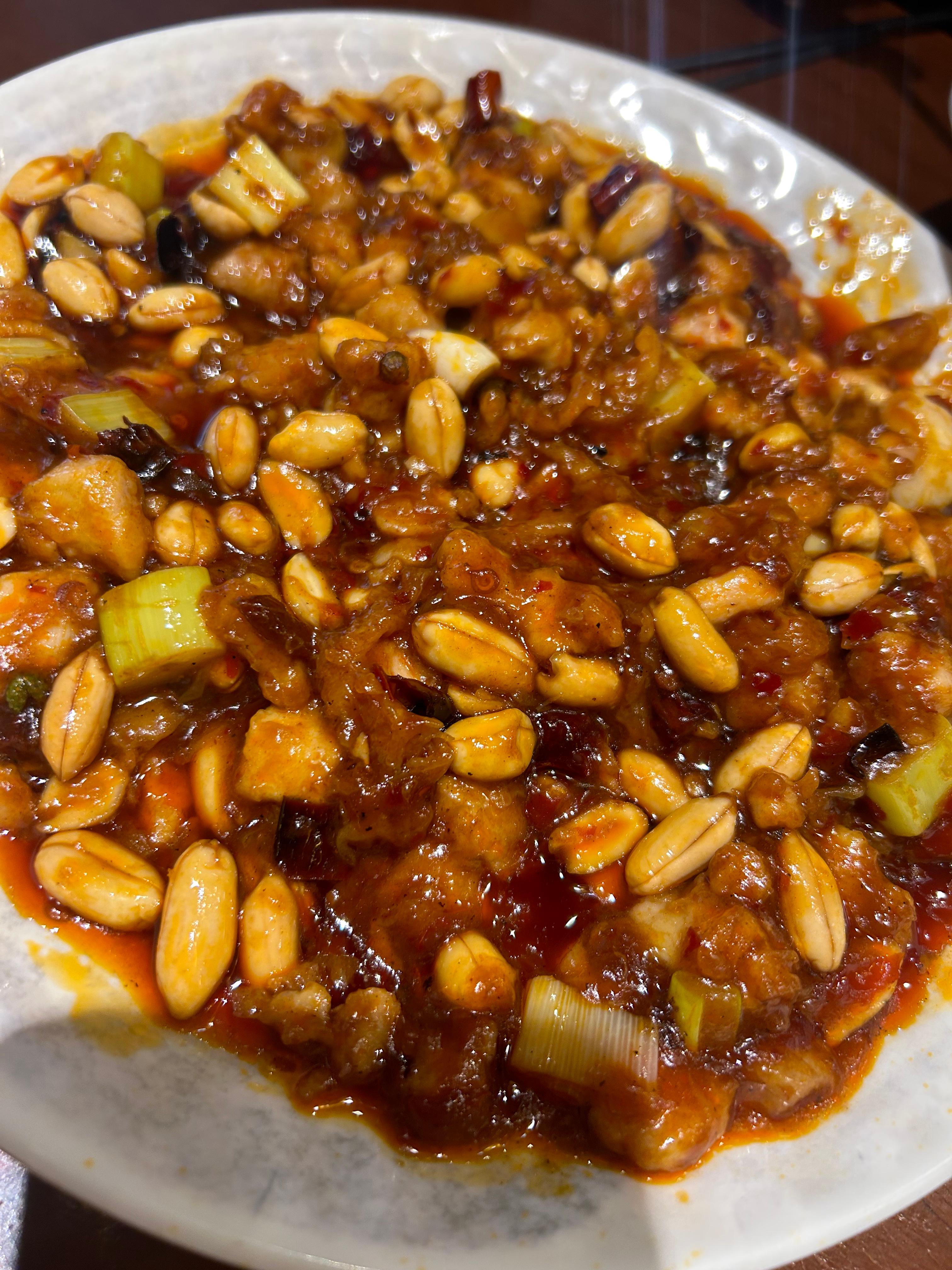 궁보지딩은 닭고기를 깍뚝 썰어 야채와 땅콩을 함께 버무려 먹는 음식이었어요. 개인적으로 꿀알로우와 꿔바로우를 좋아하는데 이번에는 낯선 음식을 먹어보고 싶어서 주문했답니다.